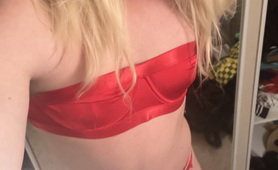 Sissy in red lingerie. My new wig makes me feel so girly