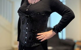 Chloe tries out a corset while also still being locked in chastity