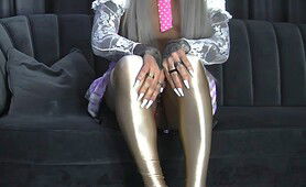 Holly posing and exposing her limp sissy clit