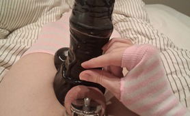 The Size Difference Between My Dildo And Caged Clitty